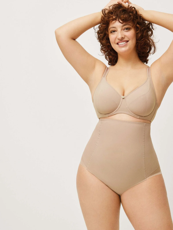 Cueca modeladora de cintura alta com alto controle do abdômen superior, médio e inferior, cintura e costas.